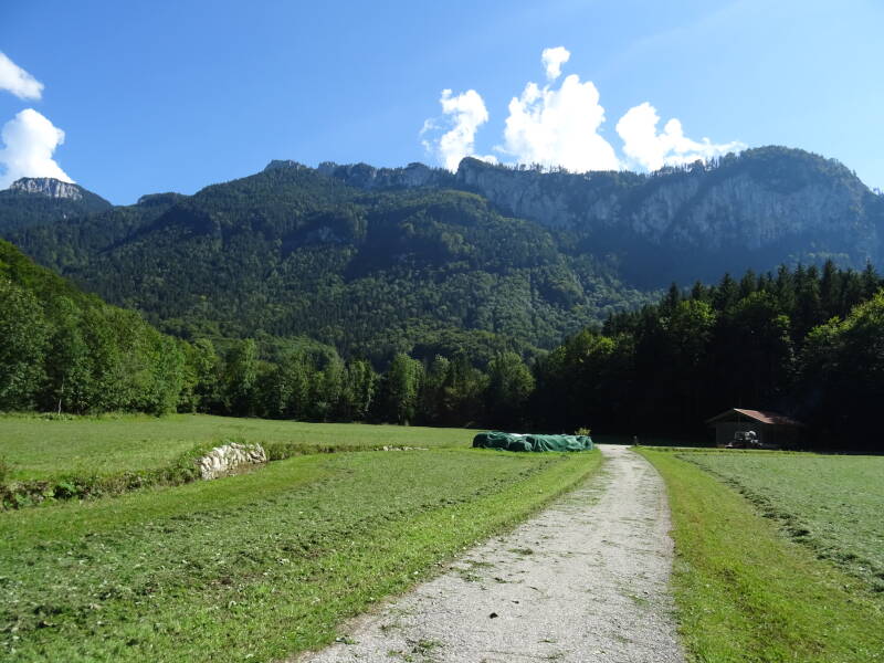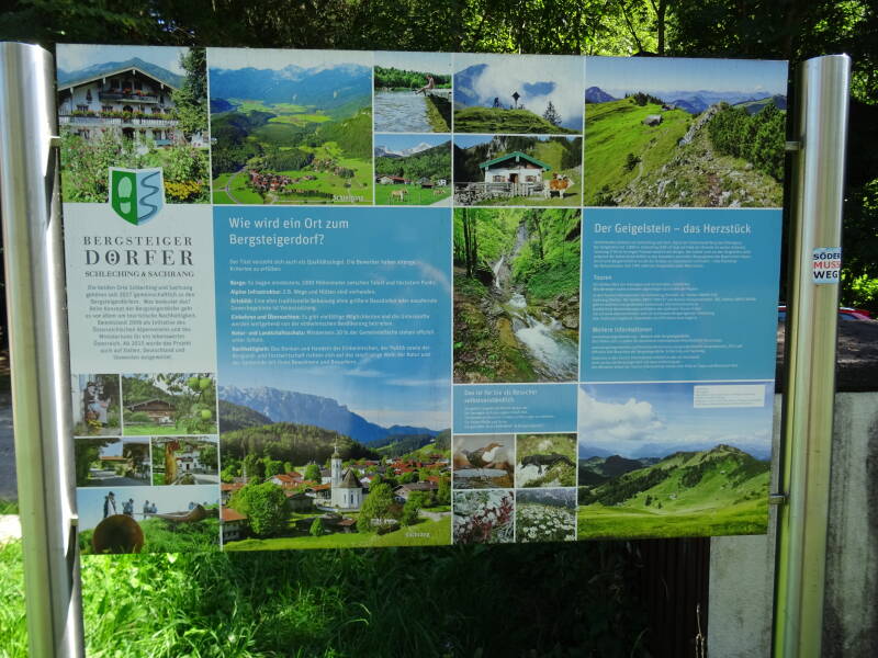 Grenzenlos Weg von Aschau nach Sachrang. Beginn der Wanderung war der Parkplatz am Kindergarten in Aschau. Der Weg entlang über die Ortschaft Bach, vorbei am Geigelstein richtung Sachrang ist einfach und nicht anspruchsvoll. Begleitet vom den Bergen ist die Gegend schön und auch im Winter für Ski oder Langlauf Freunde zu empfehlen.