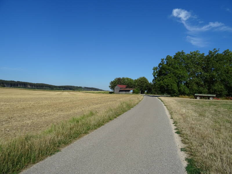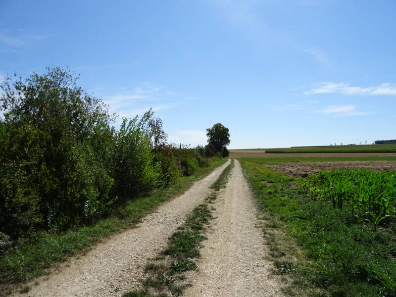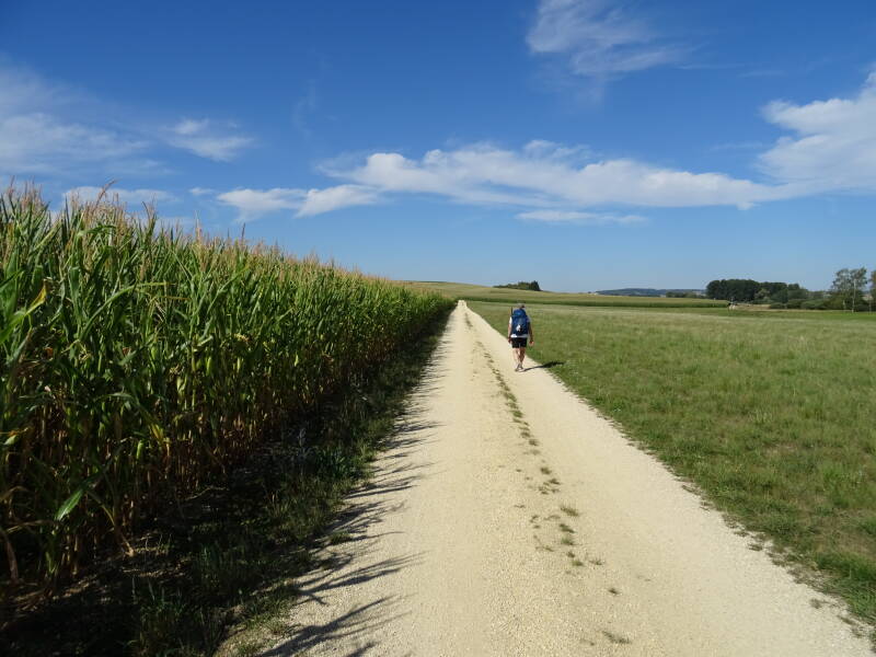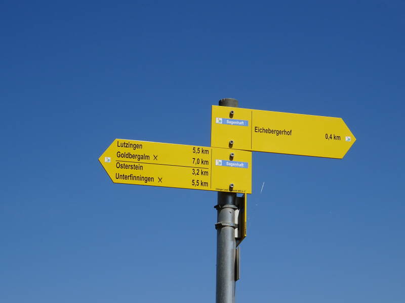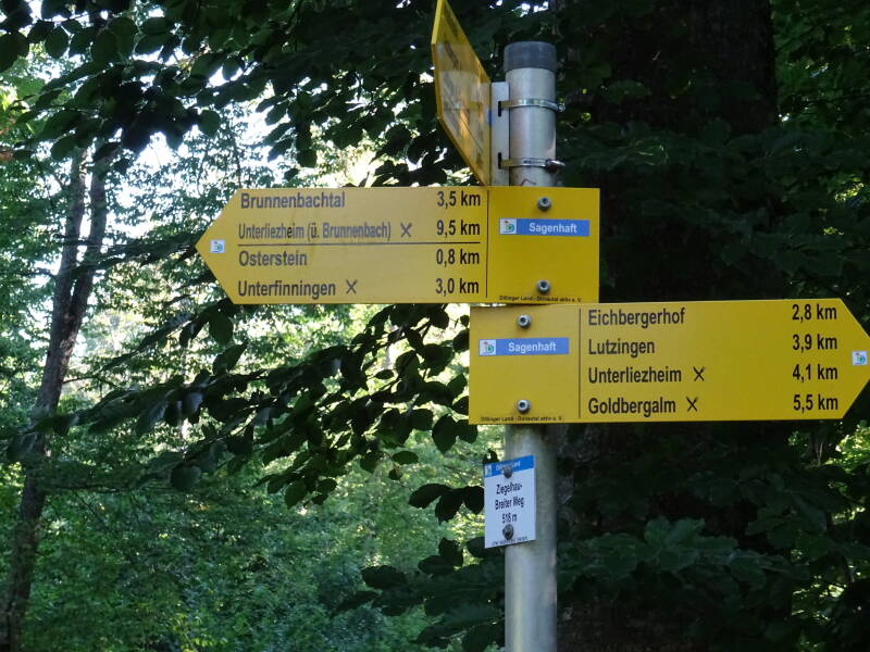Im Dillinger Land sind wir zwei Schlaufen von je 24 km gewandert. Zu dieser Zeit war es sehr heiß und alles verdörrt oder ausgetrocknet. Auf beiden Wegen keine Möglichkeit seinen Wasservorrat aufzufüllen. Die Wege selber sind unspektakulär und fast langweilig bis zu der Begegnung einiger ausgewachsener Wildschweine mit ihren Frischlingen im Wald. Sehr viele Forst und Feldwege für die normale Wanderschuhe ausreichen. Ein kleines Stück des Sinne - weges führt durch ein Pferdegehöft wo man (wenn man Hut und Stock hat)von einem großen Hund angefallen wird wenn nicht zufällig der Besitzer in der Nähe ist und ihn zurückhält. Start der Sagen schleife ist die Goldbergalm in Lutzingen. Nicht anstrengend und Familien freundlich.