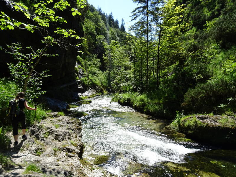 Unsere Wanderung beginnt am Mauthäusl in Schneizlreuth. Gegenüber ist ein Parkplatz der kostenlos ist. Ein tolles Erlebnis. Natur pur. Schöne Gegend und ein überwältigendes Erlebnis entlang des Steiges. Gutes Schuhwerk, Trittsicherheit und Schwindelfrei sollte man sein. Es geht nicht ganz so gach runter, aber es sind schon ein paar Meter. Nach ca. 3, 5 km ist der Weg zu Ende. Sehr empfehlenswert. Nicht für Radfahrer, Kinderwagen und Leute mit Knieproblemen.